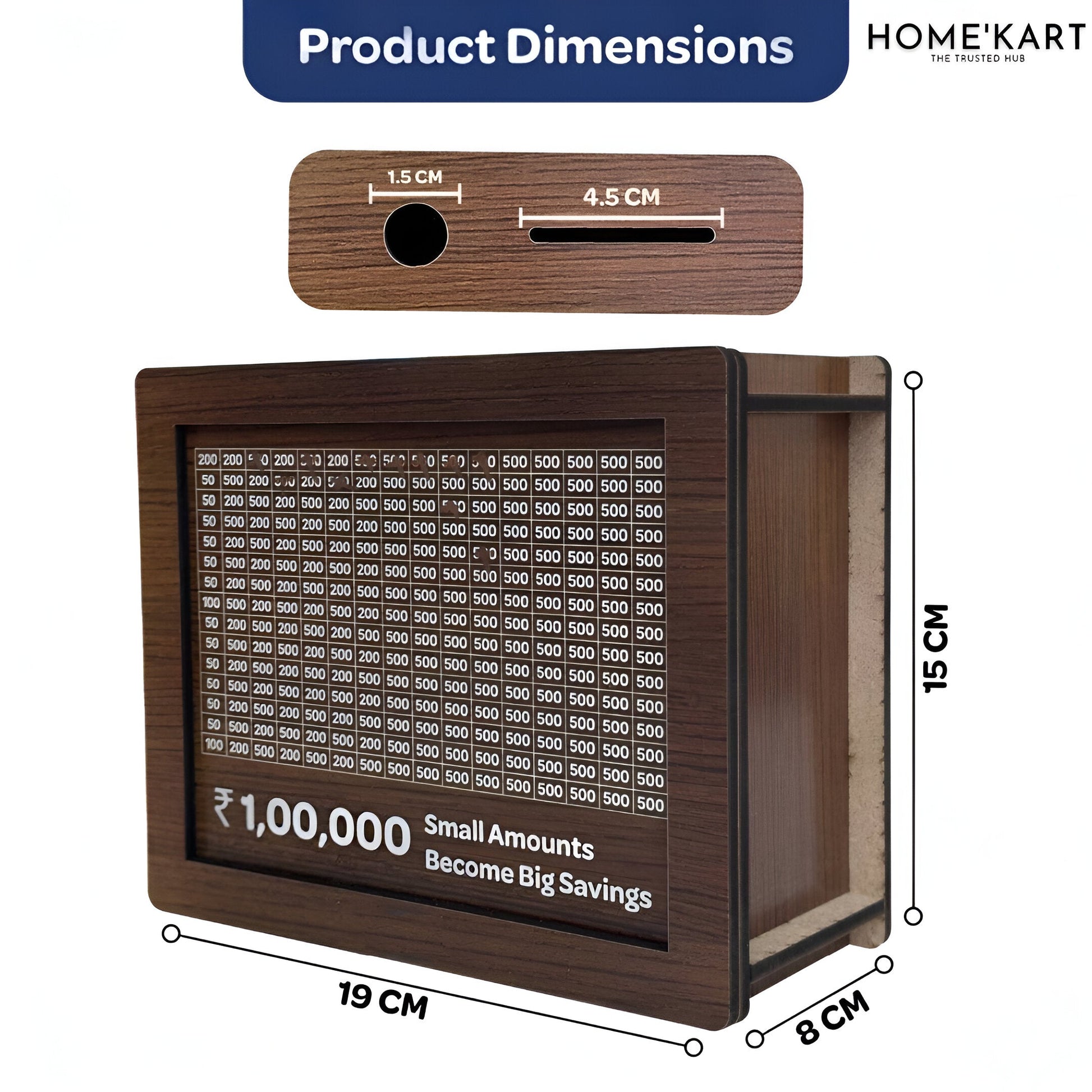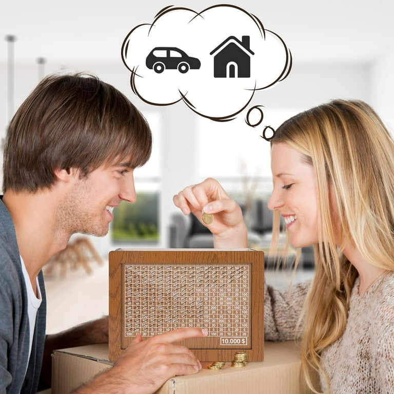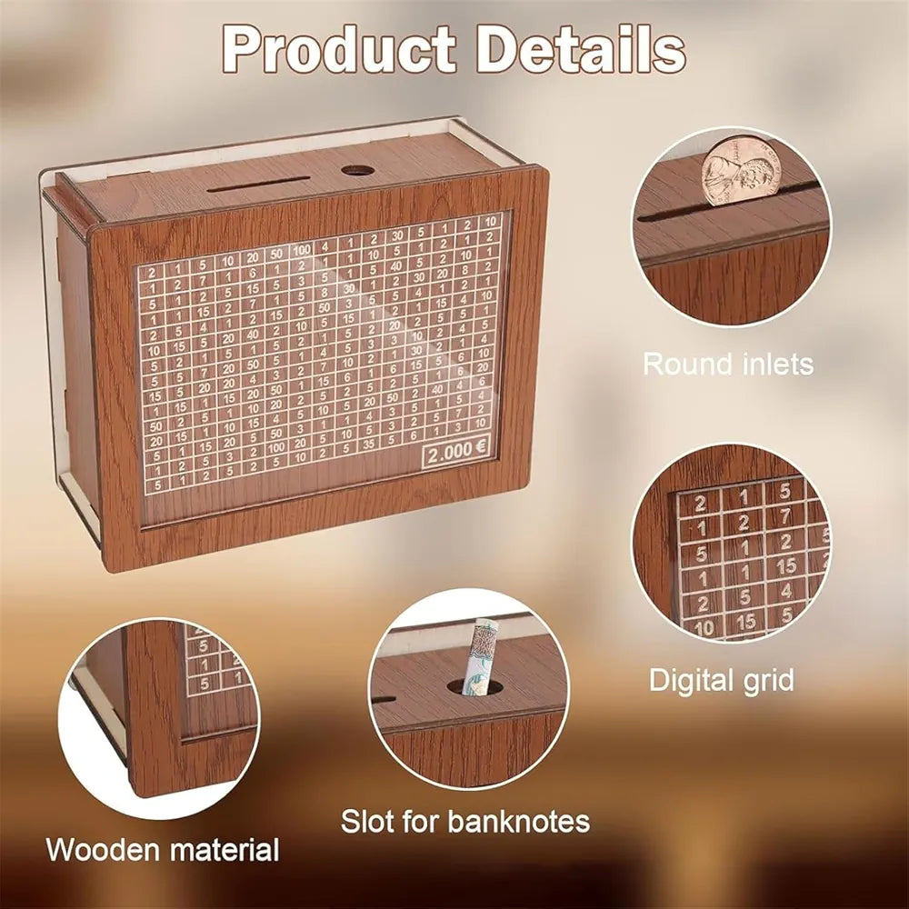 Designed to be compact and sleek, this savings box fits easily in your home or office. Its elegant wooden finish adds a touch of sophistication, making it a great addition to any space.